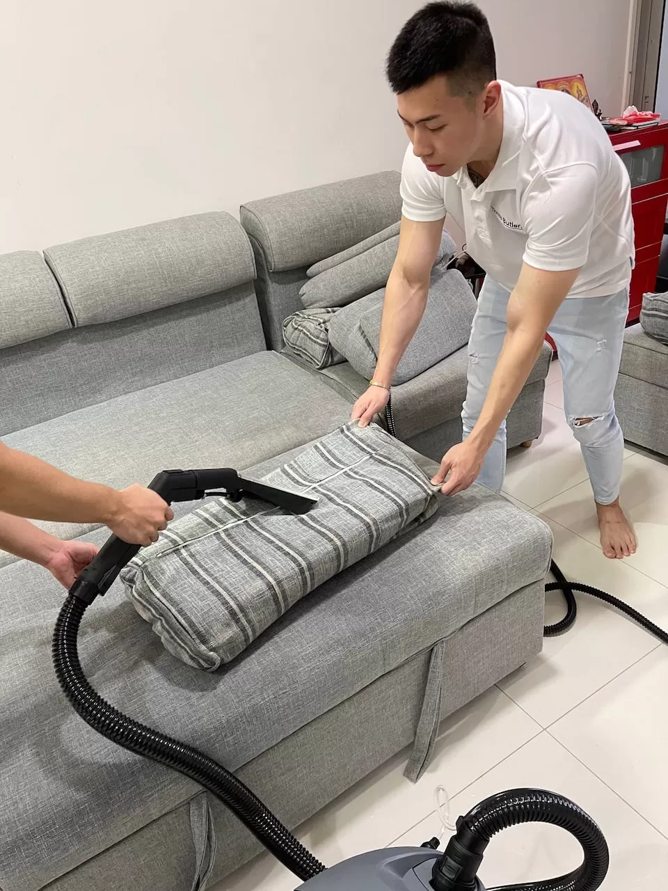 - استخدام البخار: نقوم بتطبيق تقنية تنظيف البخار لإزالة الأوساخ العميقة والشوائب داخل الأقمشة. البخار يساعد أيضًا على تعقيم الكنب وقتل الجراثيم والبكتيريا.